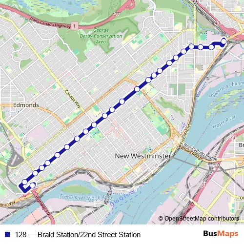 128 (Braid Station/22nd Street Station) Bus in Burnaby