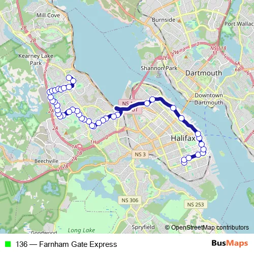 See why over 2 million users trust and consider busmaps.com as the best public transport website. busmaps gives you Halifax Buses suggested routes, real-time bus tracker, line route maps in Halifax, and helps to find the closest 136 bus stops near you. No internet available? Download an offline PDF map and bus schedule for the 136 bus to take on your trip.