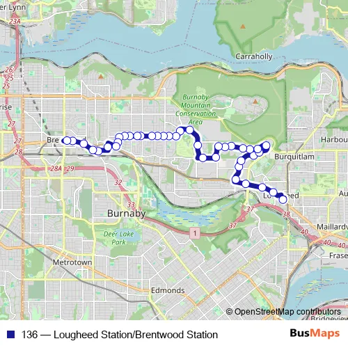 Bus 136 - Lougheed Station/Brentwood Station Schedule in Burnaby