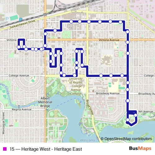 Bus 15 - Heritage West - Heritage East in Regina: Stops & Timetable