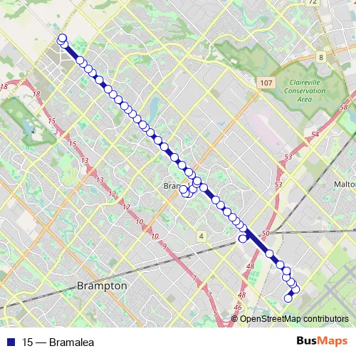 See why over 2 million users trust and consider busmaps.com as the best public transport website. busmaps gives you Brampton Buses suggested routes, real-time bus tracker, line route maps in Brampton, and helps to find the closest 15 bus stops near you. No internet available? Download an offline PDF map and bus schedule for the 15 bus to take on your trip.