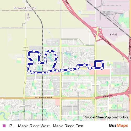 Bus 17 - Maple Ridge West - Maple Ridge East in Regina: Stops & Timetable