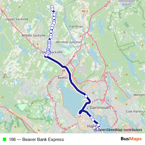 Bus 186 - Beaver Bank Express in Halifax: Stops & Timetable