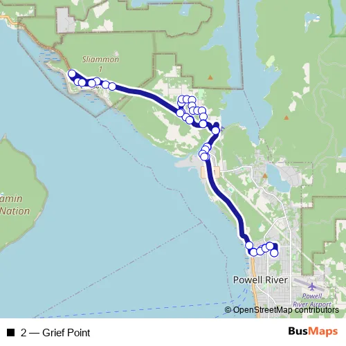 See why over 2 million users trust and consider busmaps.com as the best public transport website. busmaps gives you Sliammon Buses suggested routes, real-time bus tracker, line route maps in Sliammon, and helps to find the closest 2 bus stops near you. No internet available? Download an offline PDF map and bus schedule for the 2 bus to take on your trip.