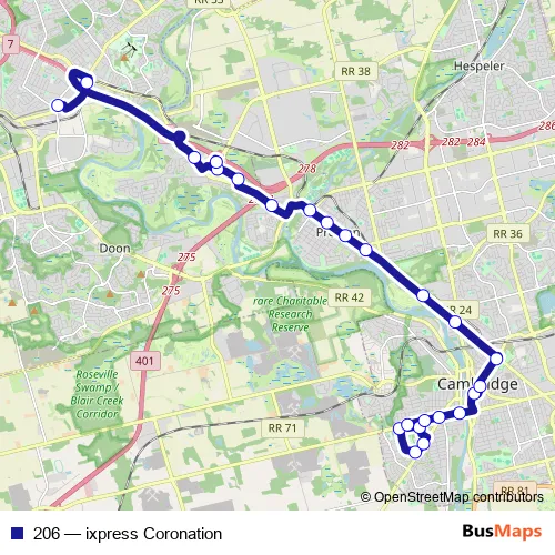 See why over 2 million users trust and consider busmaps.com as the best public transport website. busmaps gives you Kitchener Buses suggested routes, real-time bus tracker, line route maps in Kitchener, and helps to find the closest 206 bus stops near you. No internet available? Download an offline PDF map and bus schedule for the 206 bus to take on your trip.
