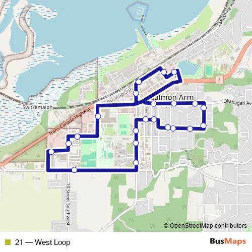 Bus 21 - West Loop in Salmon Arm: Stops & Timetable