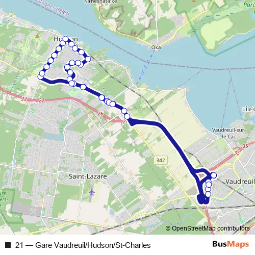 Click here to view the nearest 21 - Gare Vaudreuil/Hudson/St-Charles bus stop.