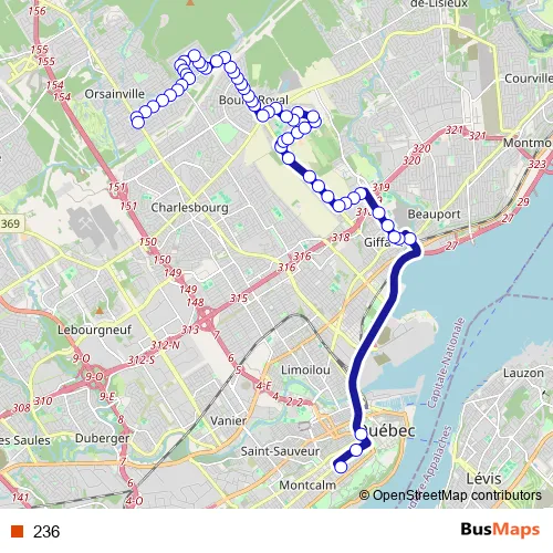 See why over 2 million users trust and consider busmaps.com as the best public transport website. busmaps gives you Quebec Buses suggested routes, real-time bus tracker, line route maps in Quebec, and helps to find the closest 236 bus stops near you. No internet available? Download an offline PDF map and bus schedule for the 236 bus to take on your trip.