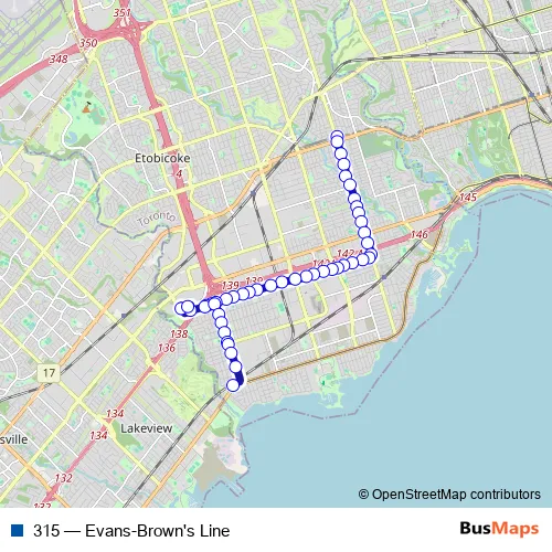 Bus 315 - Evans-Brown's Line: Full Schedule in Toronto
