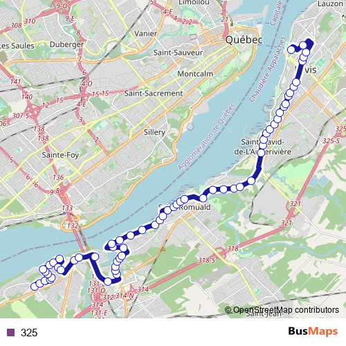 See why over 2 million users trust and consider busmaps.com as the best public transport website. busmaps gives you Quebec Buses suggested routes, real-time bus tracker, line route maps in Quebec, and helps to find the closest 325 bus stops near you. No internet available? Download an offline PDF map and bus schedule for the 325 bus to take on your trip.