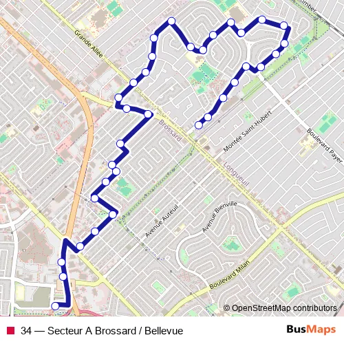Click here to view the nearest 34 - Secteur A Brossard / Bellevue bus stop.