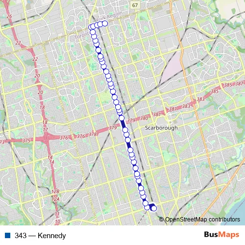 Bus 343 - Kennedy in Toronto: Stops & Timetable