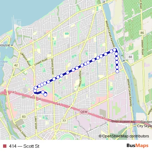 See why over 2 million users trust and consider busmaps.com as the best public transport website. busmaps gives you St. Catharines Buses suggested routes, real-time bus tracker, line route maps in St. Catharines, and helps to find the closest 414 bus stops near you. No internet available? Download an offline PDF map and bus schedule for the 414 bus to take on your trip.