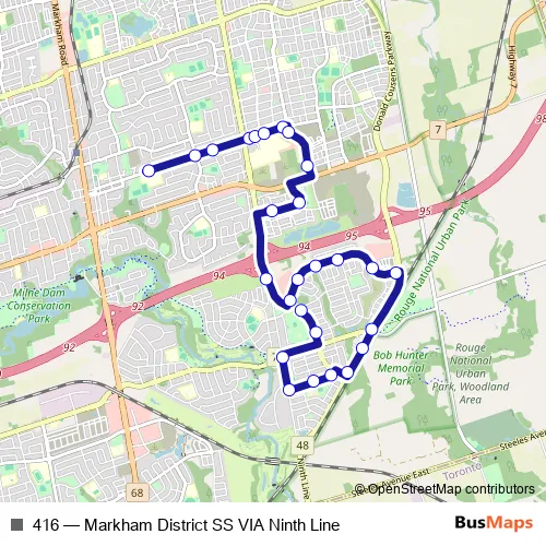 Bus 416 - Markham District SS VIA Ninth Line in Toronto: Stops & Timetable