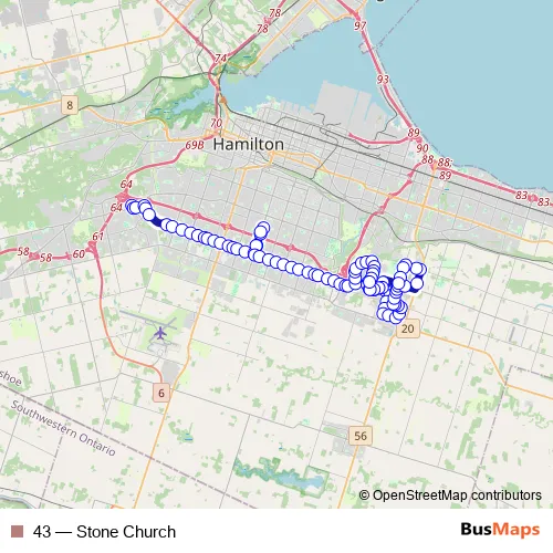 See why over 2 million users trust and consider busmaps.com as the best public transport website. busmaps gives you Stoney Creek Buses suggested routes, real-time bus tracker, line route maps in Stoney Creek, and helps to find the closest 43 bus stops near you. No internet available? Download an offline PDF map and bus schedule for the 43 bus to take on your trip.