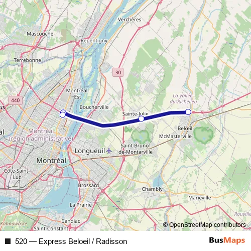 Click here to view the nearest 520 - Express Beloeil / Radisson bus stop.