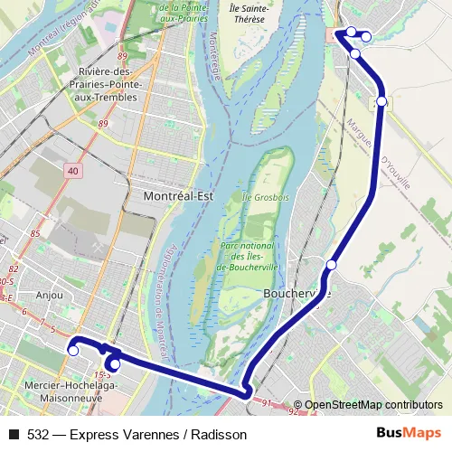 Click here to view the nearest 532 - Express Varennes / Radisson bus stop.