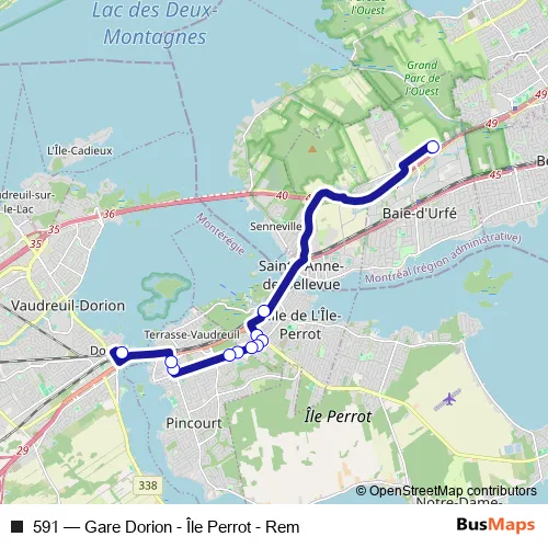 exo-La Presqu'île 591 Gare Dorion - Île Perrot - Rem Bus