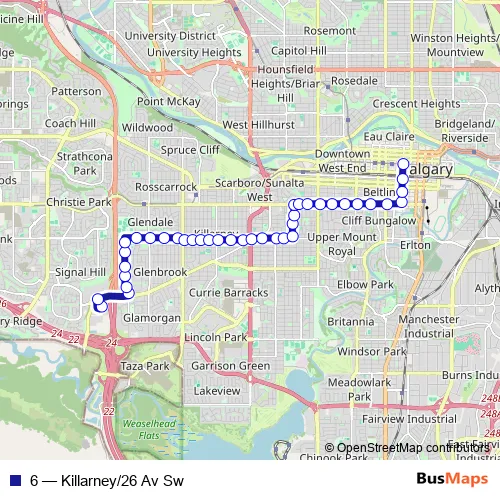 See why over 2 million users trust and consider busmaps.com as the best public transport website. busmaps gives you Calgary Buses suggested routes, real-time bus tracker, line route maps in Calgary, and helps to find the closest 6 bus stops near you. No internet available? Download an offline PDF map and bus schedule for the 6 bus to take on your trip.