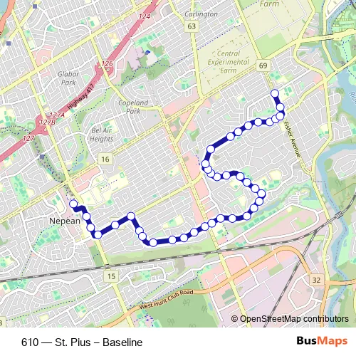 The first stop of the 610 bus route is Baseline 1b and the last stop is Fisher / Dynes. 610 (St. Pius – Baseline) is operational during on weekdays.