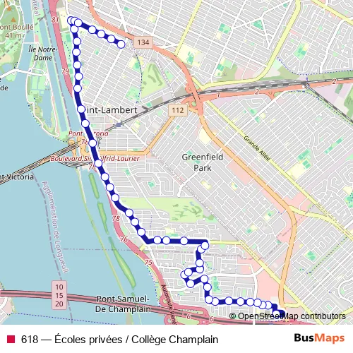 See why over 2 million users trust and consider busmaps.com as the best public transport website. busmaps gives you Longueuil Buses suggested routes, real-time bus tracker, line route maps in Longueuil, and helps to find the closest 618 bus stops near you. No internet available? Download an offline PDF map and bus schedule for the 618 bus to take on your trip.