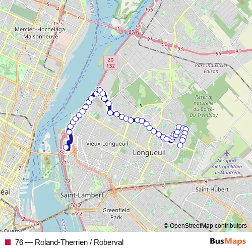 Bus 76 - Roland-Therrien / Roberval in Longueuil: Stops & Timetable