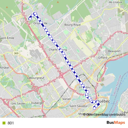 See why over 2 million users trust and consider busmaps.com as the best public transport website. busmaps gives you Quebec Buses suggested routes, real-time bus tracker, line route maps in Quebec, and helps to find the closest 801 bus stops near you. No internet available? Download an offline PDF map and bus schedule for the 801 bus to take on your trip.