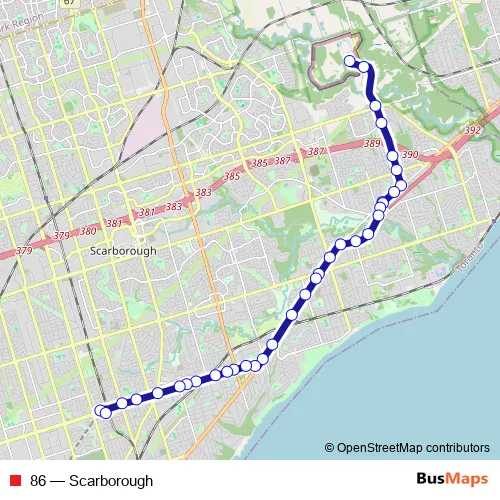 See why over 2 million users trust and consider busmaps.com as the best public transport website. busmaps gives you Toronto Buses suggested routes, real-time bus tracker, line route maps in Toronto, and helps to find the closest 86 bus stops near you. No internet available? Download an offline PDF map and bus schedule for the 86 bus to take on your trip.