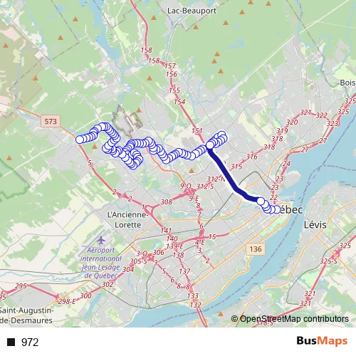 See why over 2 million users trust and consider busmaps.com as the best public transport website. busmaps gives you Quebec Buses suggested routes, real-time bus tracker, line route maps in Quebec, and helps to find the closest 972 bus stops near you. No internet available? Download an offline PDF map and bus schedule for the 972 bus to take on your trip.