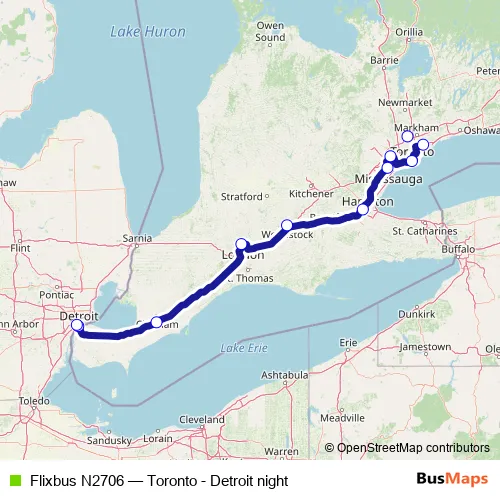 Click here to view the nearest Flixbus N2706 - Toronto - Detroit night bus stop.