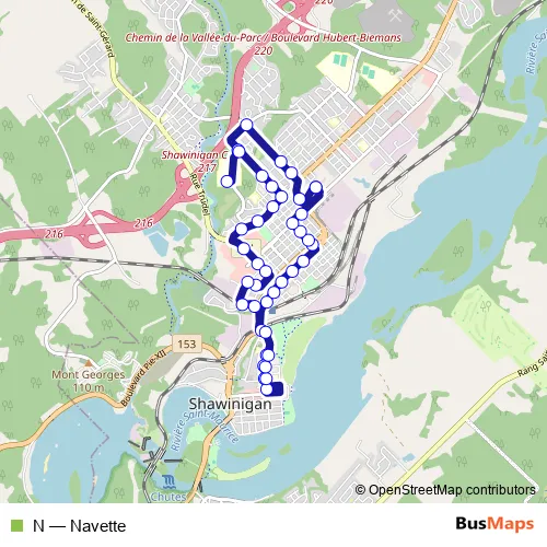 Bus N - Navette in Shawinigan: Stops & Timetable