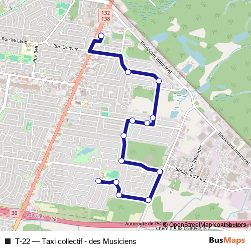 Click here to view the nearest T-22 - Taxi collectif - des Musiciens bus stop.