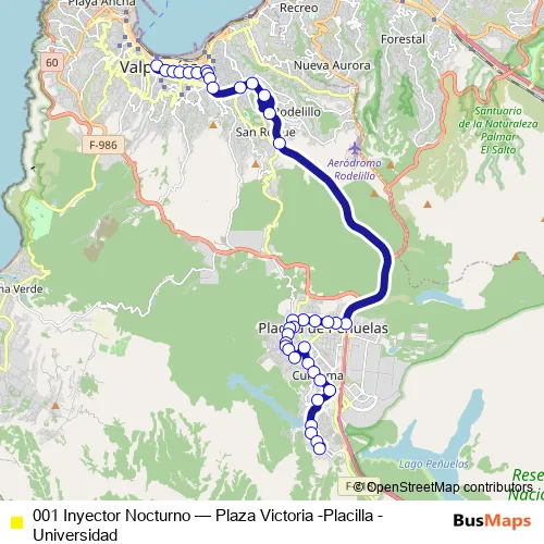 Bus 001 Inyector Nocturno - Plaza Victoria -Placilla - Universidad: Full Schedule in Valparaiso