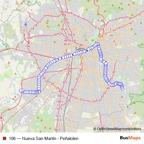 See why over 2 million users trust and consider busmaps.com as the best public transport website. busmaps gives you Santiago Buses suggested routes, real-time bus tracker, line route maps in Santiago, and helps to find the closest 106 bus stops near you. No internet available? Download an offline PDF map and bus schedule for the 106 bus to take on your trip.