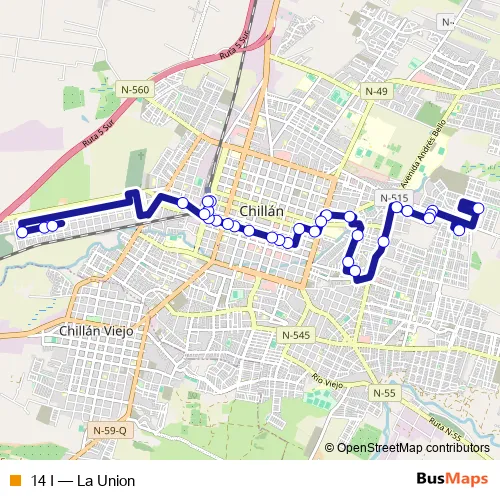 See why over 2 million users trust and consider busmaps.com as the best public transport website. busmaps gives you Chillan Buses suggested routes, real-time bus tracker, line route maps in Chillan, and helps to find the closest 14 I bus stops near you. No internet available? Download an offline PDF map and bus schedule for the 14 I bus to take on your trip.