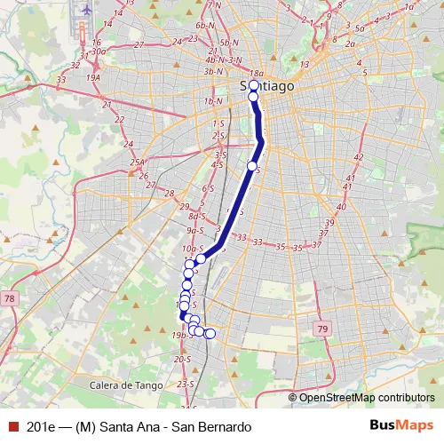 See why over 2 million users trust and consider busmaps.com as the best public transport website. busmaps gives you San Bernardo Buses suggested routes, real-time bus tracker, line route maps in San Bernardo, and helps to find the closest 201e bus stops near you. No internet available? Download an offline PDF map and bus schedule for the 201e bus to take on your trip.