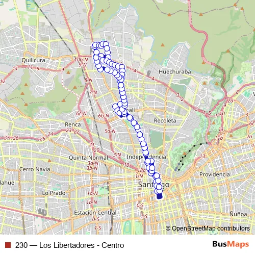 See why over 2 million users trust and consider busmaps.com as the best public transport website. busmaps gives you Santiago Buses suggested routes, real-time bus tracker, line route maps in Santiago, and helps to find the closest 230 bus stops near you. No internet available? Download an offline PDF map and bus schedule for the 230 bus to take on your trip.