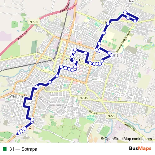 See why over 2 million users trust and consider busmaps.com as the best public transport website. busmaps gives you Chillan Buses suggested routes, real-time bus tracker, line route maps in Chillan, and helps to find the closest 3 I bus stops near you. No internet available? Download an offline PDF map and bus schedule for the 3 I bus to take on your trip.