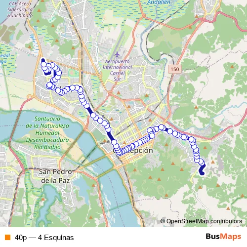 See why over 2 million users trust and consider busmaps.com as the best public transport website. busmaps gives you Concepcion Buses suggested routes, real-time bus tracker, line route maps in Concepcion, and helps to find the closest 40p bus stops near you. No internet available? Download an offline PDF map and bus schedule for the 40p bus to take on your trip.