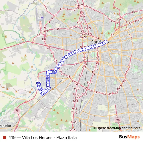 See why over 2 million users trust and consider busmaps.com as the best public transport website. busmaps gives you Santiago Buses suggested routes, real-time bus tracker, line route maps in Santiago, and helps to find the closest 419 bus stops near you. No internet available? Download an offline PDF map and bus schedule for the 419 bus to take on your trip.