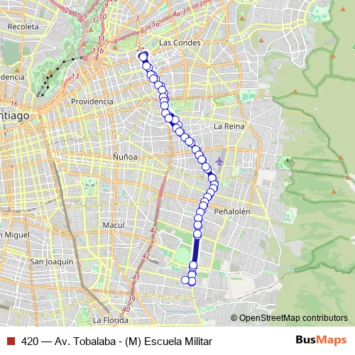 See why over 2 million users trust and consider busmaps.com as the best public transport website. busmaps gives you Santiago Buses suggested routes, real-time bus tracker, line route maps in Santiago, and helps to find the closest 420 bus stops near you. No internet available? Download an offline PDF map and bus schedule for the 420 bus to take on your trip.