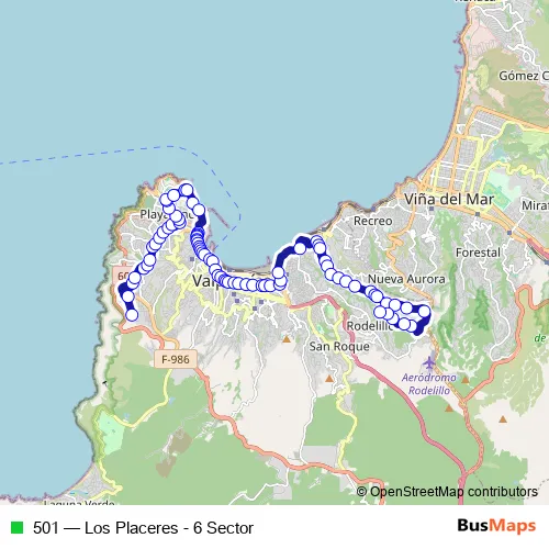 Bus 501 - Los Placeres - 6 Sector: Full Schedule in Valparaiso