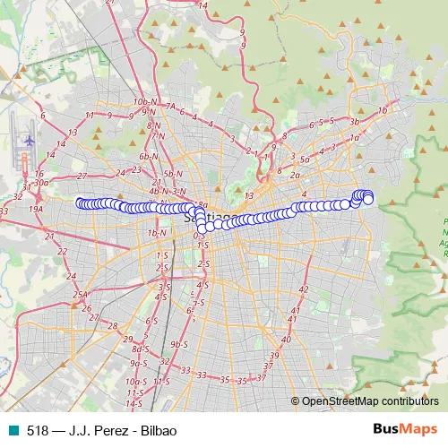 Bus 518 - J.J. Perez - Bilbao: Full Schedule in Santiago