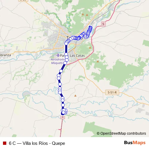 Click here to view the nearest 6 C - Villa los Ríos - Quepe bus stop.