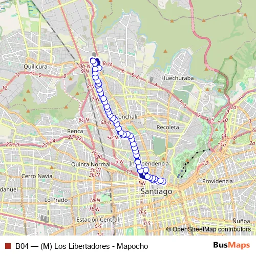Click here to view the nearest B04 - (M) Los Libertadores - Mapocho bus stop.