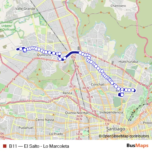 Click here to view the nearest B11 - El Salto - Lo Marcoleta bus stop.