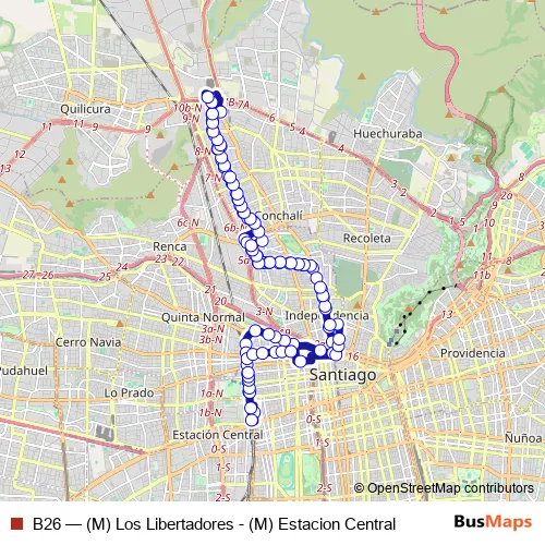 Red Metropolitana de Movilidad B26 (M) Los Libertadores - (M) Estacion Central Bus