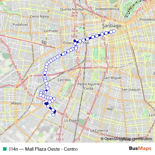 See why over 2 million users trust and consider busmaps.com as the best public transport website. busmaps gives you Santiago Buses suggested routes, real-time bus tracker, line route maps in Santiago, and helps to find the closest I14n bus stops near you. No internet available? Download an offline PDF map and bus schedule for the I14n bus to take on your trip.