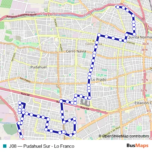 Bus J08 - Pudahuel Sur - Lo Franco: Full Schedule in Santiago