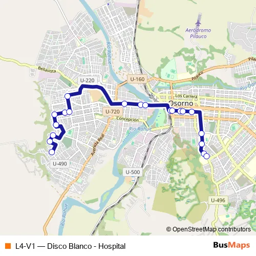 See why over 2 million users trust and consider busmaps.com as the best public transport website. busmaps gives you Osorno Buses suggested routes, real-time bus tracker, line route maps in Osorno, and helps to find the closest L4-V1 bus stops near you. No internet available? Download an offline PDF map and bus schedule for the L4-V1 bus to take on your trip.